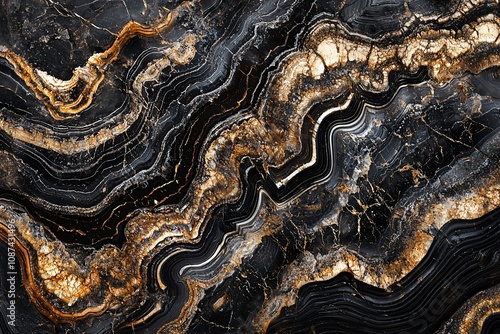Fototapeta premium Elegant Black and Gold Marble Texture with Fluid Patterns