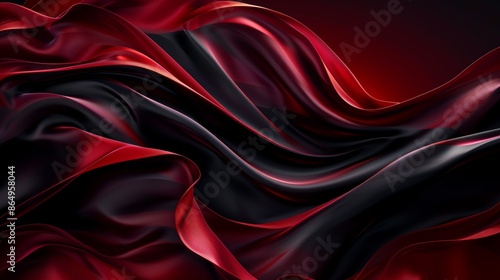 © Viam, Obraz premium Elegant black and red silk fabric waves texture