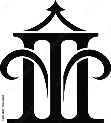 Fototapeta premium Elegant Black and White Architectural Logo Design Three Pillars with Flourishes