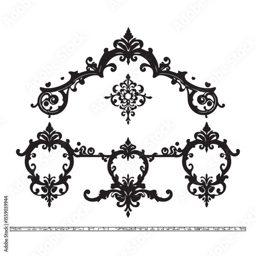 © Creative Design IT, Naklejka premium Elegant black and white baroque style design elements set for decoration
