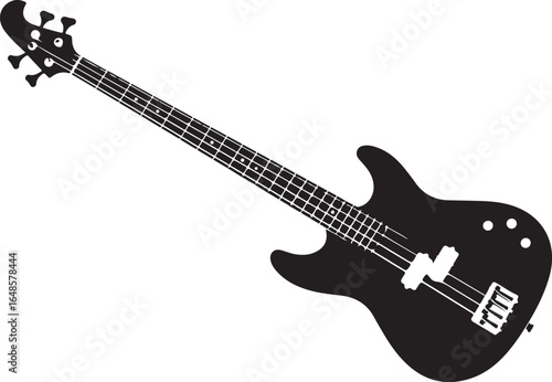 Obraz premium Elegant Black and White Bass Guitar Illustration Musical Instrument for...