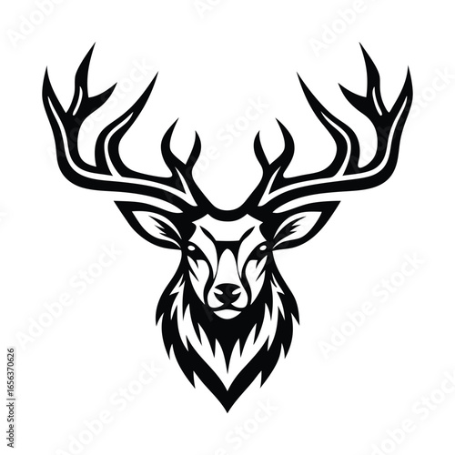 Fototapeta premium Elegant Black and White Deer Head Vector Illustration with Intricate Antler...