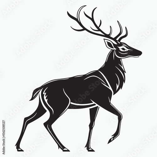 © KhandokerMehedi, Obraz premium Elegant Black and White Deer Illustration Walking with Antlers