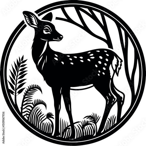 Fototapeta premium Elegant black and white deer in forest circle