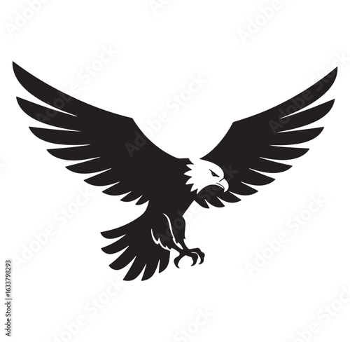 Fototapeta premium Elegant black and white eagle spreading wings flying isolated on white background