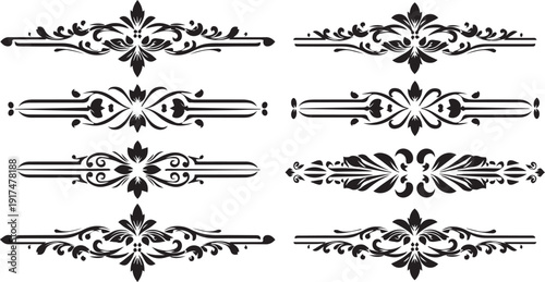 © Nafish, Fototapeta premium Elegant black and white floral ornaments seamless border vector illustration design art