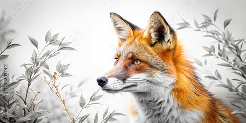 © Caitlin, Fototapeta premium Elegant Black and White Fox Sketch Minimalist Art Print, Wildlife Line Drawing, Botanical Illustration, Nature Wall Decor