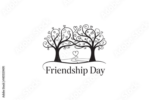 Obraz premium Elegant black and white Friendship Day design with intertwined trees.