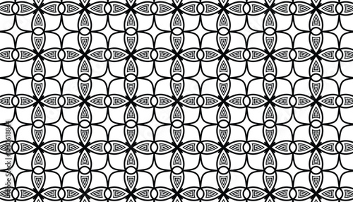 Fototapeta premium Elegant Black and White Geometric Interlocking Floral Pattern