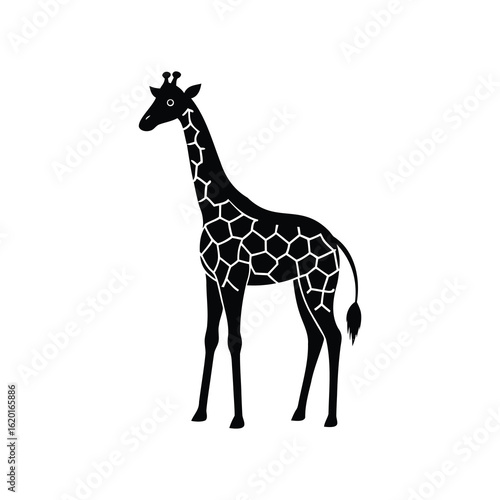 Fototapeta premium Elegant black and white giraffe vector illustration with distinctive spot...
