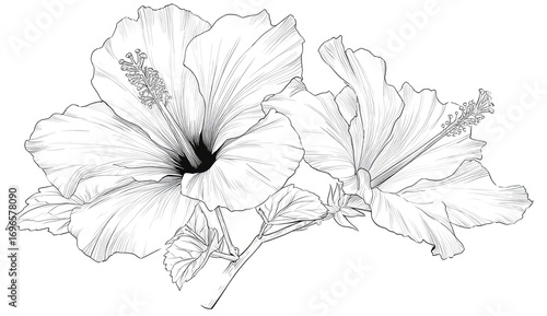 © muh, Fototapeta premium Elegant black and white hibiscus blossoms