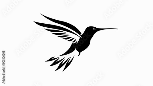 © Mufarokah, Obraz premium Elegant black and white hummingbird graphic in flight isolated on white