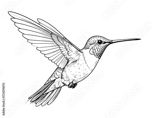 © Sumber, Obraz premium Elegant black and white hummingbird sketch