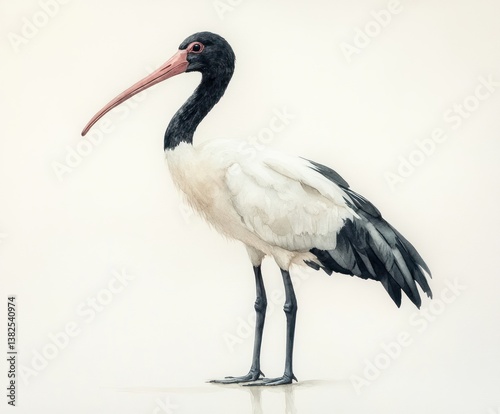 © Monika, Fototapeta premium Elegant Black and White Ibis Bird Watercolor Painting Illustration Isolated on White Background