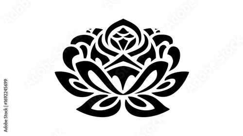 © Finder, Obraz premium Elegant Black and White Lotus Flower Design Suitable for Various Creative Projects and Illustrations