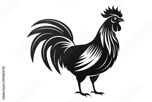 Fototapeta premium Elegant Black and White Rooster Illustration Farm Animal Symbol Vector Design