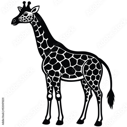 © ForhadGFX, Fototapeta premium Elegant black and white silhouette illustration of a standing giraffe on a white background