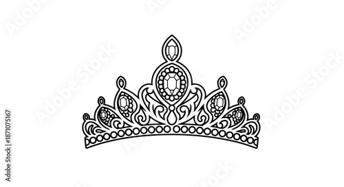 © Berkah, Fototapeta premium Elegant Black and White Tiara Line Art Drawing with Ornate Jewels.