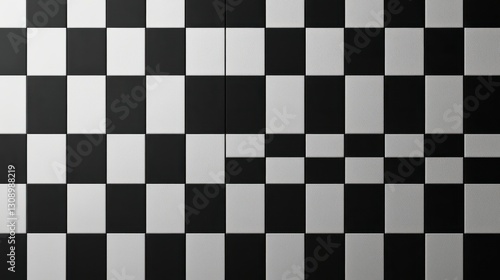 Fototapeta premium Elegant Black and White Tiled Wall with Classic Clock Showing Time
