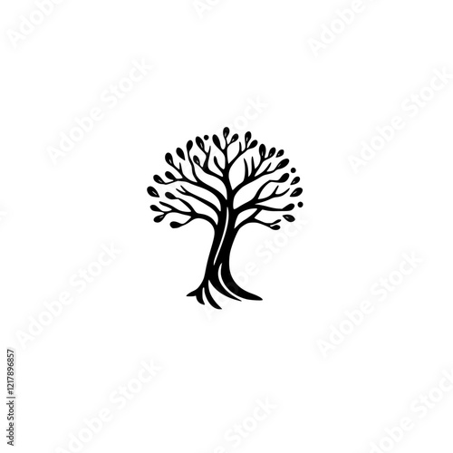 © MatandSterre, Obraz premium Elegant Black and White Tree Illustration: Nature, Botanical, Minimalist Graphic Design