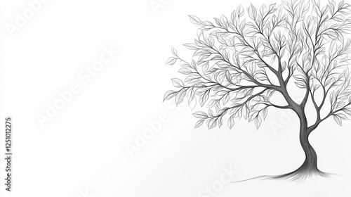 © Benzbutter, Obraz premium Elegant Black and White Tree with Intricate Branches and Leaves on a Minimalistic Background
