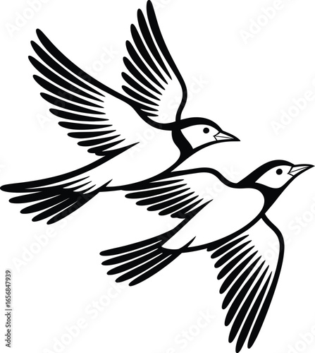 Obraz premium Elegant black and white vector illustration of two birds in flight.