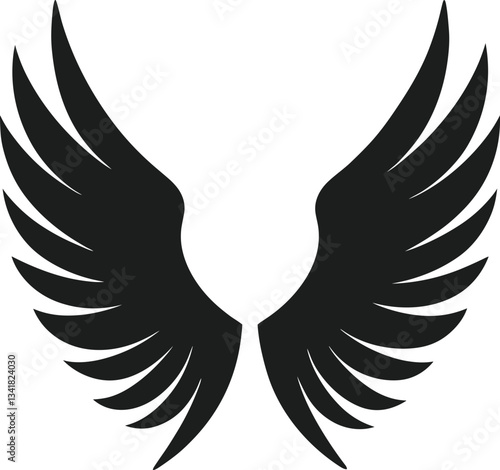 © MdImran, Obraz premium Elegant Black Angel Wings Vector – Minimalist Feathered Wing Silhouette