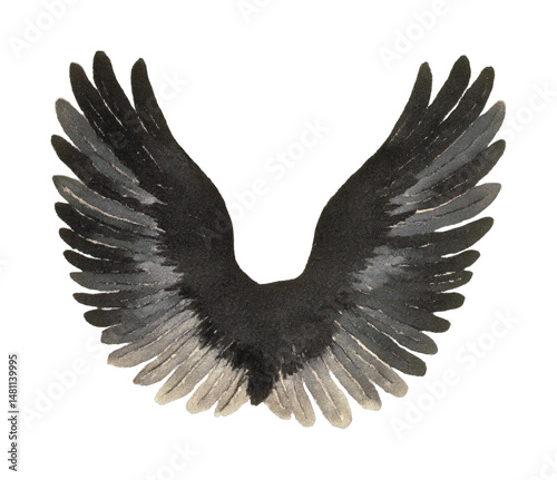 © Mr. Stocker, Naklejka premium Elegant black angel wings with gradient feather design, cut out - stock png.