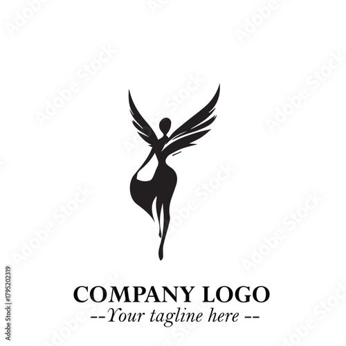 Naklejka premium Elegant Black Angel Woman Silhouette Logo Symbol on White Background