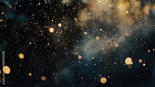 Fototapeta premium Elegant black background filled with shimmering golden sparkles, showcasing a...