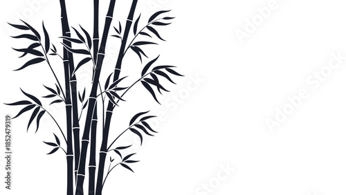 © loxia stock image, Obraz premium Elegant Black Bamboo Stalks and Leaves Silhouette on White Background.