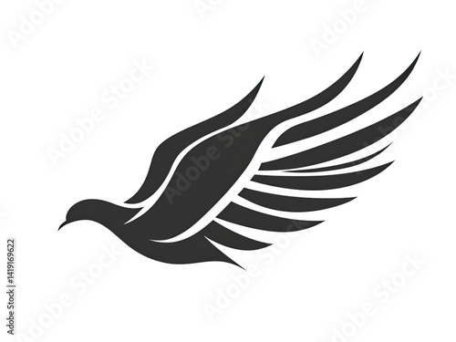 © Isolated Stock, Obraz premium Elegant Black Bird in Flight: A Stylized Avian Design Graphic