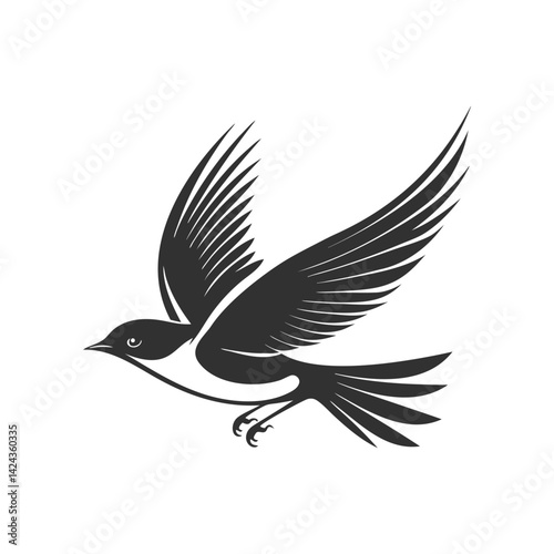 Fototapeta premium Elegant Black Bird in Flight Illustration for Nature Art or Symbolic Design