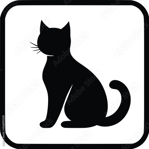 © Vector Bee, Obraz premium Elegant black cat vector icon; simple, square frame design.