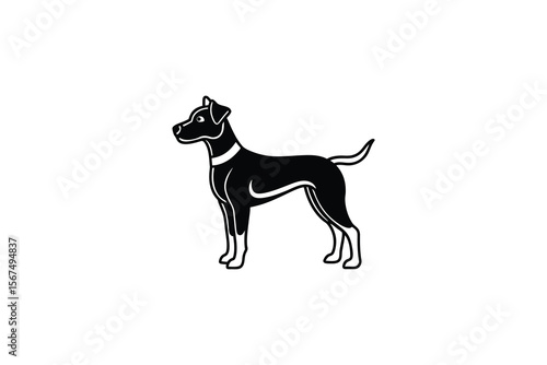 © Likhon, Obraz premium Elegant Black Dog Silhouette with Collar on White Background Illustration