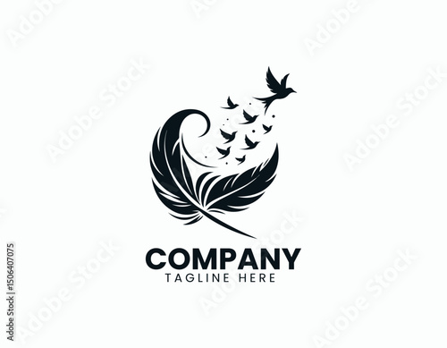 © Dawi Firdaus, Obraz premium Elegant Black Feather Silhouette Releasing Smaller Birds Flying Vector Logo Design