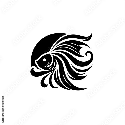 © Md Aktaruzaman, Obraz premium Elegant black fish silhouette with flowing fins and tail