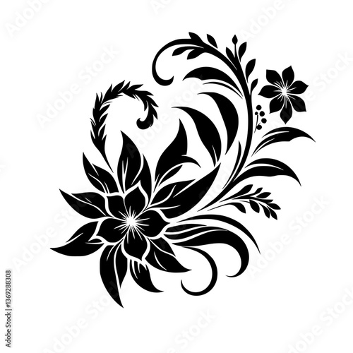 © MatandSterre, Fototapeta premium Elegant Black Floral Vector Design, Flourish Motif, Isolated on White