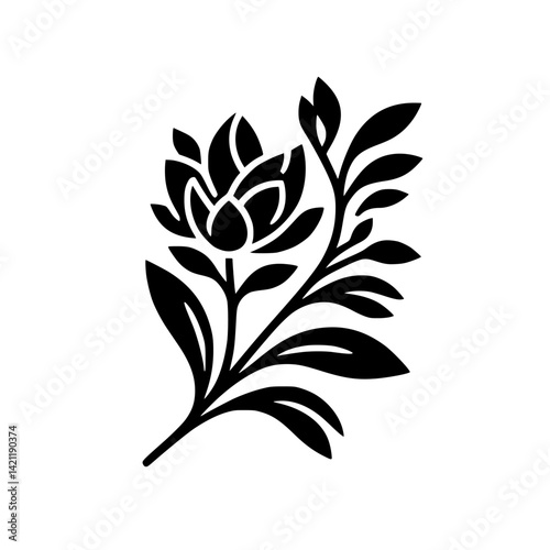 Fototapeta premium Elegant Black Flower Silhouette on White Background, Decorative Vector
