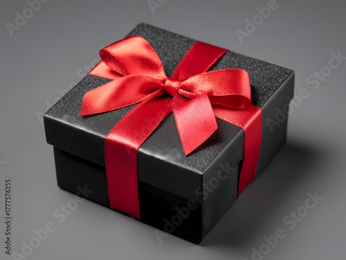 Fototapeta premium Elegant Black Gift Box with Red Ribbon