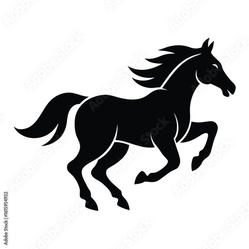 © shahin, Obraz premium Elegant Black Horse Silhouette in Dynamic Motion Galloping Boldly on a White Background Illustration