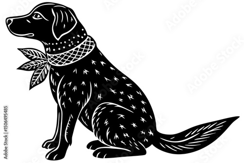 Fototapeta premium Elegant Black Labrador Retriever Dog Illustration, labrador, retriever, dog, black, profile, detailed, monochrome, clipart, position, realistic, friendly, lovely, collar, canine, sophisticated, compan