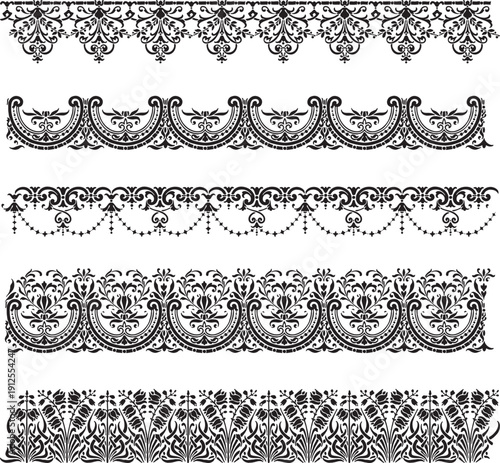 © Kalidasi, Fototapeta premium Elegant black lace border set with floral decorative patterns vector