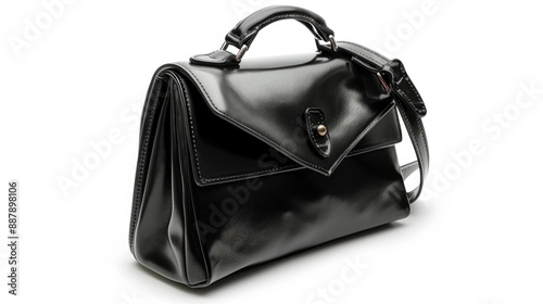 © TheWaterMeloonProjec, Naklejka premium Elegant black leather handbag for women on white background