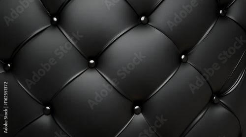 Naklejka premium Elegant black leather upholstery texture with button tufts for luxury design