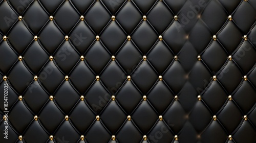 Fototapeta premium Elegant black leather upholstery with golden buttons for backgrounds
