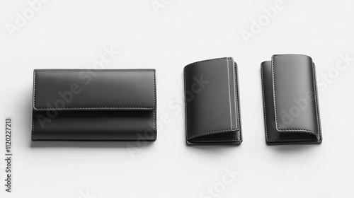 Fototapeta premium Elegant Black Leather Wallets Minimalist Design Modern Fashion Accessory Collection