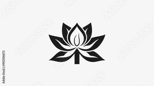 © Mufarokah, Obraz premium Elegant black lotus flower icon design isolated on white background