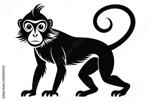 Obraz premium Elegant black monkey poses attentively, showcasing a stylized curved tail and...