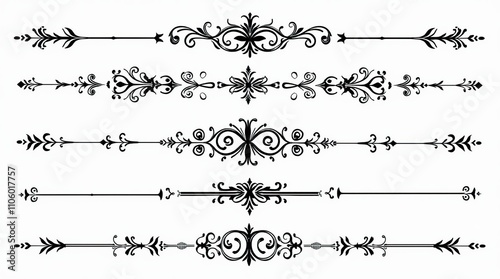 Fototapeta premium Elegant Black Ornamental Border Designs on White Background